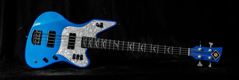 The toast of Memphis recording engineers, up for sale is this gorgeous Lake Placid Blue Metallic Aviator Bass. Unique 33" scale provides effortless smooth and fast playing without sacrificing string tension. Master mode jazz switch for two completely different circuits gives you on/off for each pickup plus a parallel/series switch that when in series, you will swear this has an active preamp! Switch up to jazz mode and get a wonderful upright sound, with a separate filter and dedicated tone knob. Master volume and 6 position Tonestyler Duo Bass Six make this the most versatile bass around, to say nothing of the look and balance!